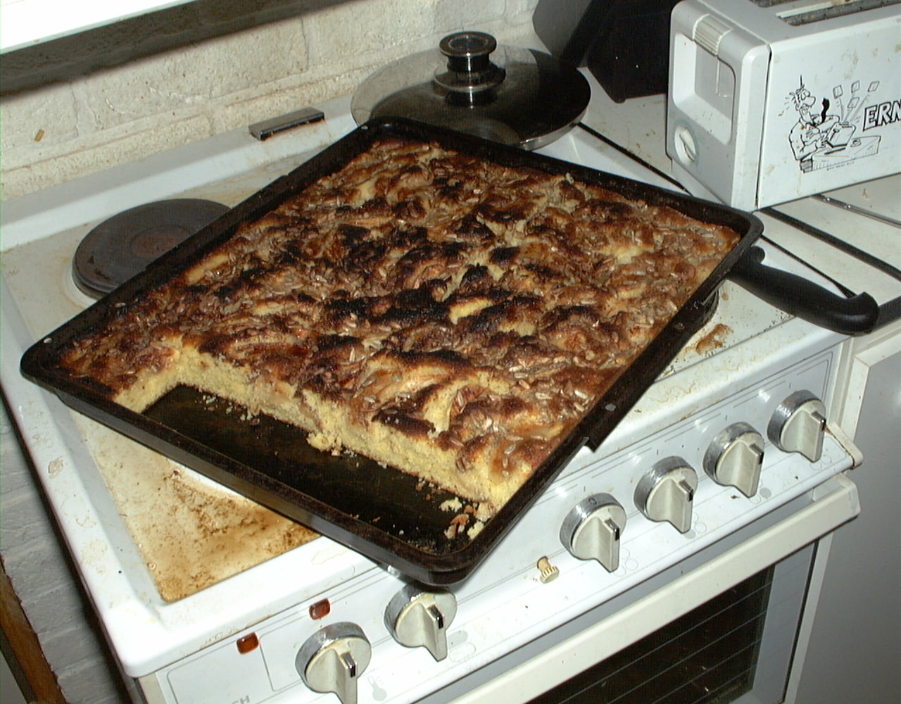 Stapp neddi eplebåtene jevnt utover det hele, og godt neddi kakedeigen.